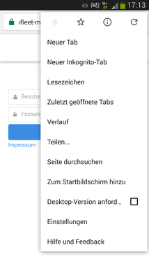 Mit Android startest du Google Chrome und öffnest anschließend die Website infleet-mobile.bornemann.net. Hier wählst du das Menü-Symbol aus, klickst auf “Zum Startbildschirm hinzufügen” und anschließend noch einmal auf “Hinzufügen”.