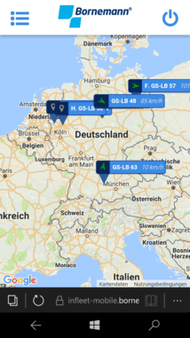 Die mobile GPS Ortung für unterwegs die neue Bornemann Infleet App zur mobilen Fahrzeugortung