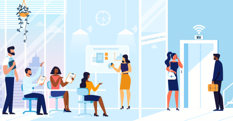 Da Zustandssensoren, wie bereits erwähnt, auch erfassen können, wie viele Personen sich gerade in welchem Büroraum aufhalten, kannst du die Technik ebenfalls dazu nutzen, schnell und bequem einen leeren Konferenzraum innerhalb des Gebäudes zu finden. Diese Anwendungsmöglichkeit bietet außerdem weitere Vorteile in smarten Büros mit Wechselarbeitsplätzen. Mitarbeiter müssen durch die Sensoren nicht mehr lange nach einem freien Platz suchen, sondern finden diesen einfach über eine Smart Office-App, welche sie auch direkt zum Zielort navigiert. So werden Zeitverluste minimiert.