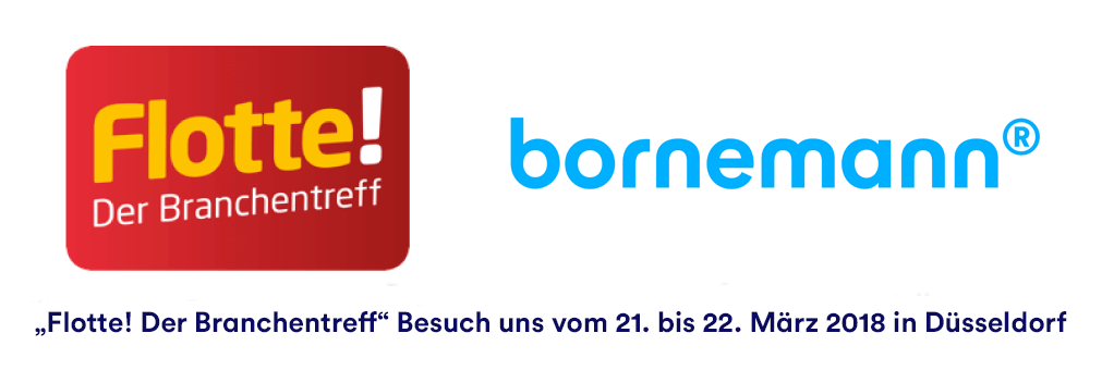 In diesem Jahr findet wieder die wichtige Messe “Flotte! Der Branchentreff” rund um das Thema Fuhrpark statt. Wir von der Bornemann AG sind wie im letzten Jahr auch wieder als Aussteller mit einem Stand vertreten. Die Messe bringt Fuhrparkleiter, Dienstleister und Interessenten zusammen. Der Austausch untereinander steht daher im Vordergrund.